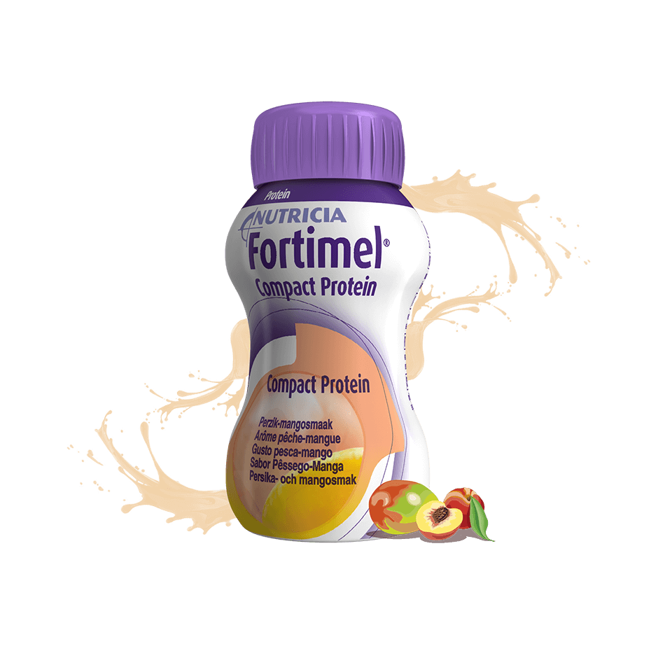 En kompakt näringsdryck med högt proteininnehåll som ger mycket energi och näring i liten volym. Glutenfri, låglaktos.